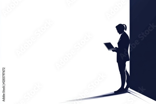 Minimalistic Illustration of a Person Using a Laptop for a Conference Call on Isolated Background
