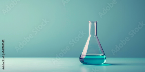 Minimalistic Laboratory Flask with Blue Liquid on Pastel Background