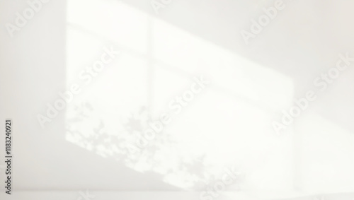 Minimalistic light background with blurred foliage shadow on white wall