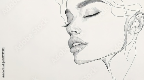 minimalistic line art illustration of a face, drawn in a continuous single line, placed on a clean white background, highlighting simplicity and elegance