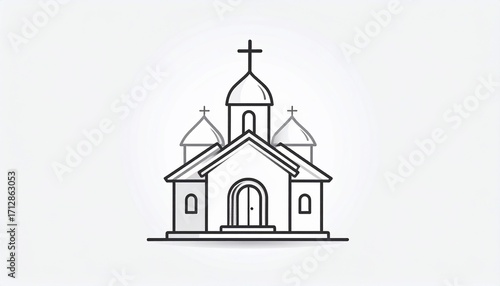 Minimalistic outline illustration of a church building, religious icon or symbol