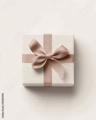 minimalistic packaging designs on pastel, Minimalistic Square Gift Box with Ribbon on White Background