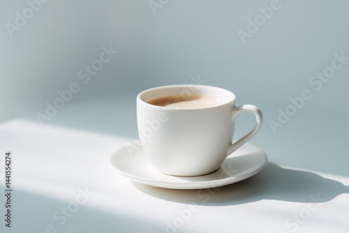 minimalistic photo of empty cup with shadow isolated on stark white background providing ample copy space