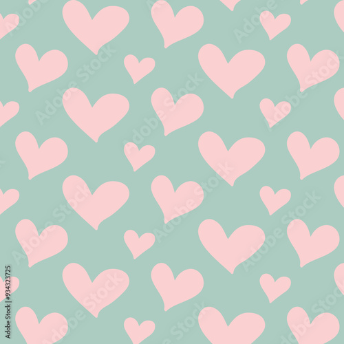 Minimalistic seamless pattern with small hearts on a pink background. Vector print for wallpaper, fabric, textile design, wrapping paper.