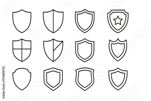 Minimalistic Shield Line Icon Bundle, Editable Stroke, Linear Pictogram Collection for Cards, Apps, Banners, Posts, Transparent Vector Cartoon Illustrations with Security and Protection Symbols
