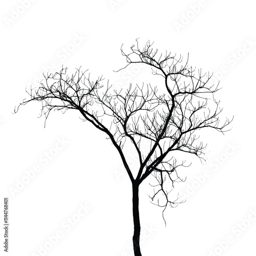 Minimalistic silhouette of a leafless tree with intricate branches vector. Perfect for nature-inspired designs, graphic art, decorative prints., environmental projects, book covers, posters.