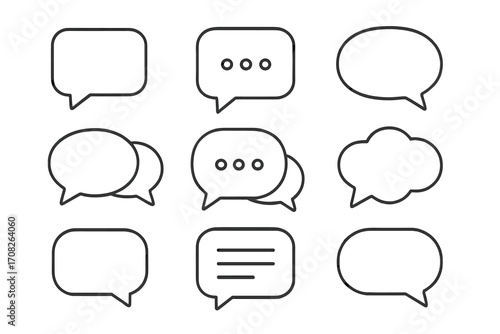 Minimalistic speech bubble line icon bundle, linear pictograms for web, graphic design, apps, social media, banners, cards, vector cartoon chat symbols set
