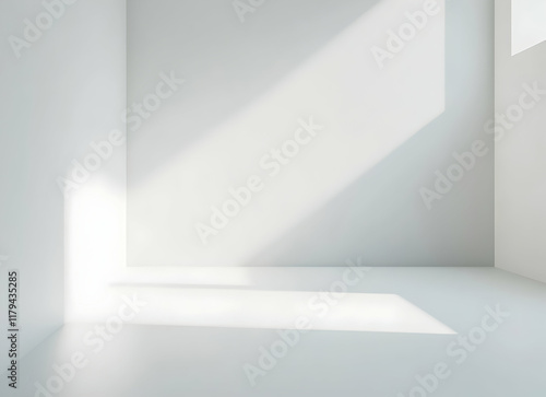 Minimalistic Sunlit Room with Soft Shadows and Bright White Surfaces in Modern Architecture Style