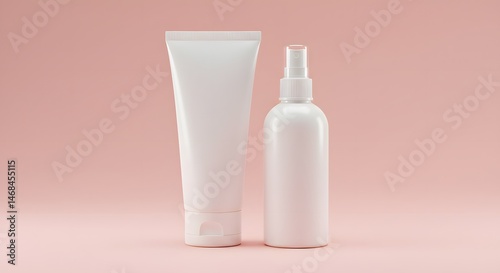 Minimalistic White Cosmetic Containers on Soft Pink Background for Skincare Products