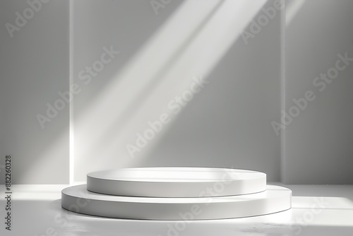 Minimalistic white podium with dramatic lighting, perfect for product display or presentation in a clean and modern setting. High Quality
