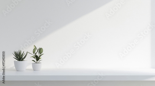 Minimalistischer weißer Raum. Cleaner, moderner Look. Leerer Innenraum für Konzeptdesign. Schlichte Ästhetik, zeitlose Eleganz