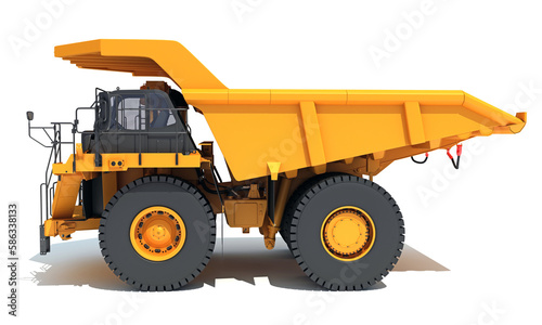 Mining Dump Truck heavy construction machinery 3D rendering on white background