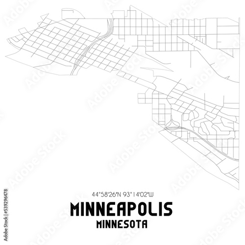 Minneapolis Minnesota. US street map with black and white lines.