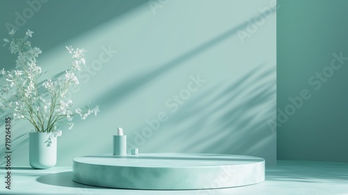 Mint background products display podium scene background vector 3d .