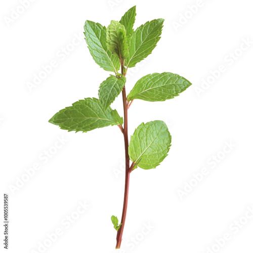 Mint: Fresh mint leaves on a stem, showcasing their vibrant color.
