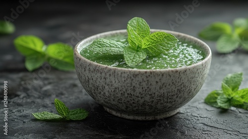 Mint smoothie bowl, dark background, healthy recipe
