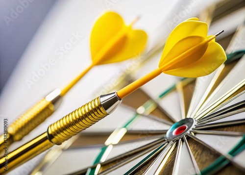 Missed Target: Yellow Darts on White, Close-Up Image Representing Lost Opportunities, Missed Chances, Second Chances, Business Concept