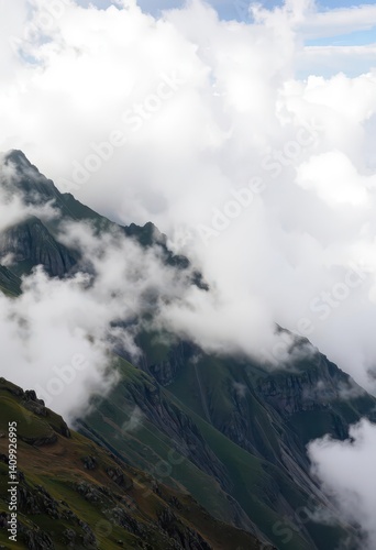 Misty Andean peaks shrouded in swirling clouds, South America, dramatic