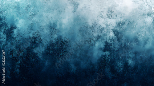 Misty blue ocean waves roll softly, surrounded by a foggy, tranquil atmosphere.