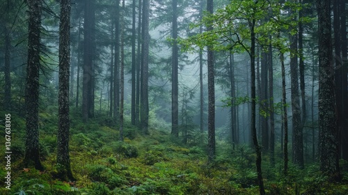 Misty Forest Enchantment: A Serene Green Sanctuary