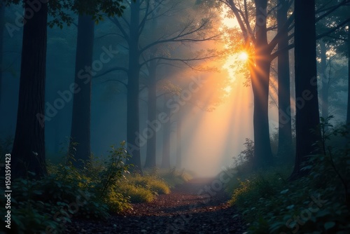Misty forest, ethereal glow fading into darkness, fantasy, gradient