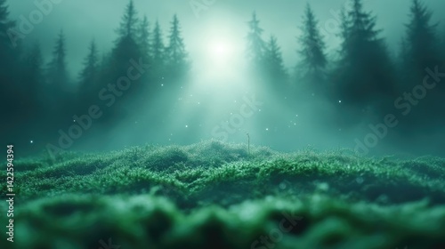 Misty forest glade bathed in ethereal light