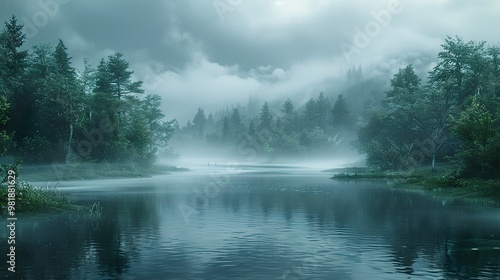 Misty Forest Lake: Tranquil Nature Photography
