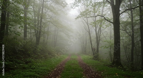 Misty Forest Path Foggy Woodland Trail Green Trees Nature Scene