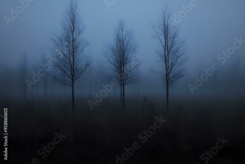 Misty Forest Trees in the Morning