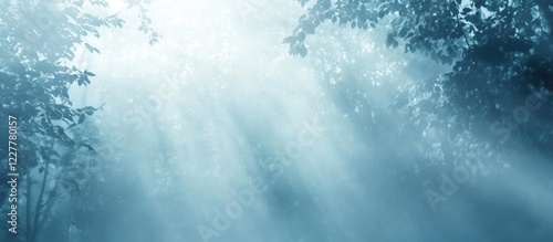 Misty Forest with Ethereal Light Rays Creating an Enchanted Atmosphere and Ample Space for Text Overlay