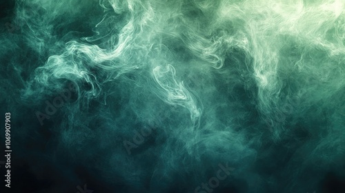 Misty Green and Teal Smoke Blending in a Dark Atmosphere, Offering a Soft, Abstract, and Dreamlike Design for Use in Backgrounds, Digital Artwork, and Atmospheric Effects