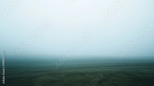 Misty landscape with soft gradients of blue and green tones, serene atmosphere.