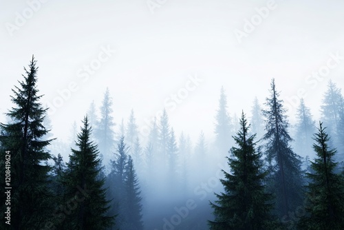 Misty mountain forest, pines, serene landscape, peaceful background, nature wallpaper
