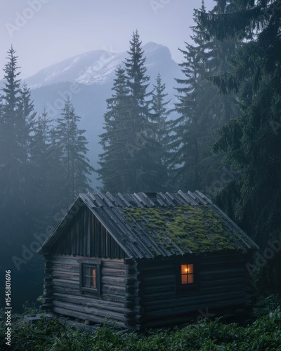 Misty Mountain Log Cabin Night Light mountain cabin