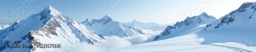Misty mountain range, untouched snow cover, ski tracks , outdoor, pattern, serene