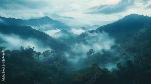 Misty Mountains Enveloped In Blue Hues Of Dawn