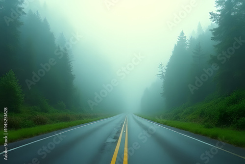 Misty road journey enchanted forest landscape photography serene environment perspective of tranquility