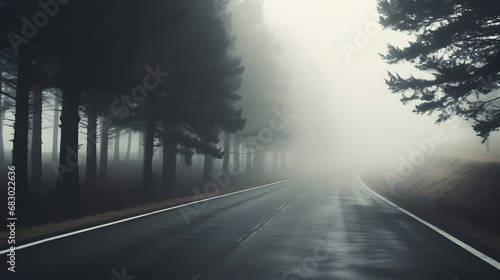 Misty Road Through Forest Mysterious Journey Concept