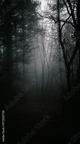 Misty, twilight forest whispers folklore tales, evoking Samhain rituals, shadowy pine druidic gathering, mystical nature's enigma