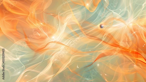 Mix of orange and cool mint swirling smoke patterns luminous points backdrop
