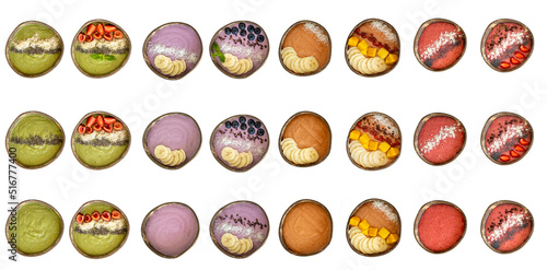 Mix Smoothie Bowl Step by Step Collage. Healthy Breakfast. Colorful food.