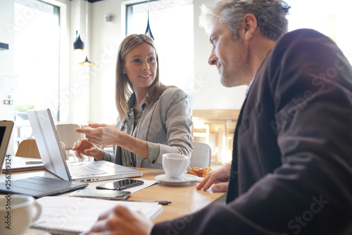 Mixed sales team working through presentation before meeting