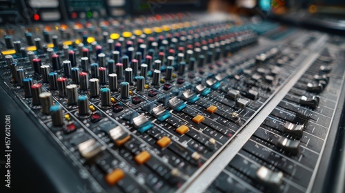 Mixer Soundboard. Black Analog Audio Equipment Array for Broadcast