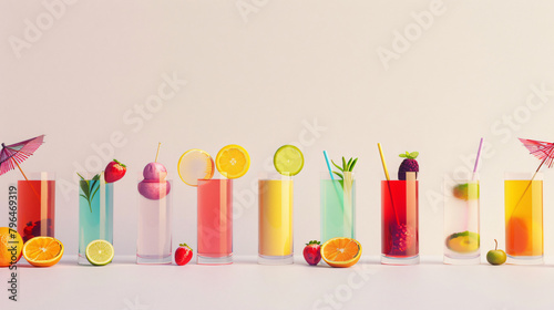 Mixology Canvas: Colorful Cocktail Ingredients in a Minimalist White Row