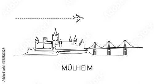 Mlheim City Skyline Line Art with Plane, and Minimal.