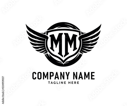 MM Monogram logo Design. MM logo Design Shield, Wings, Monogram, Company Branding, Vector