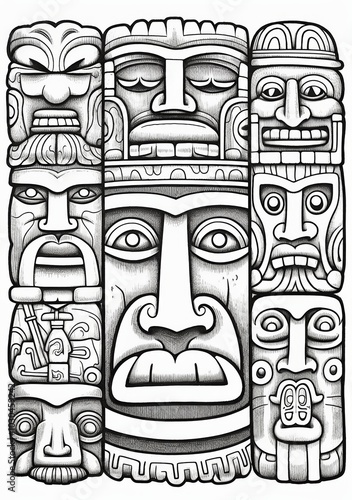 Moai Lovers Coloring Book Page for Adults and Children Generative AI