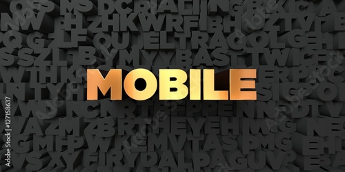 Mobile - Gold text on black background - 3D rendered royalty free stock picture. This image can be used for an online website banner ad or a print postcard.