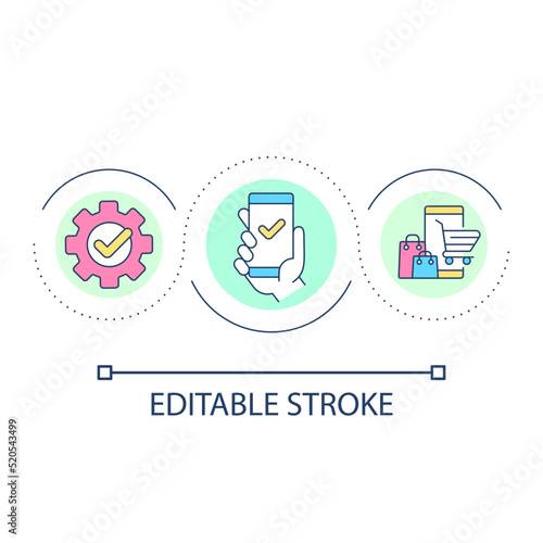 Mobile app for shopping loop concept icon. Order goods on internet. Business and technology abstract idea thin line illustration. Isolated outline drawing. Editable stroke. Arial font used