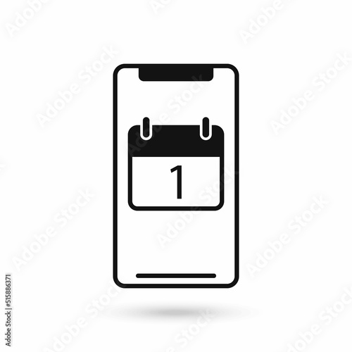 Mobile phone flat design icon with Calendar icon with the date 1